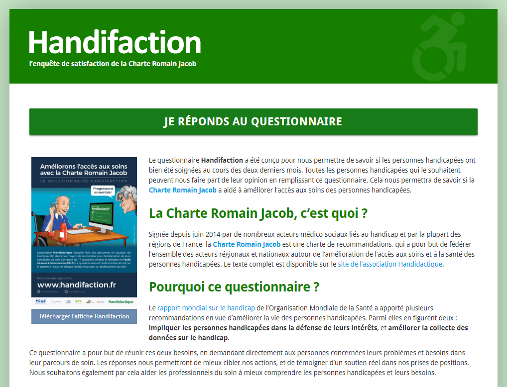 Pour l’association Handidactique, j’ai conçu en 2015 un site web et des outils d’analyse destinés à recueillir les avis des personnes en situation de handicap concernant leur accès aux soins. Le site, développé sur WordPress, utilisait initialement Google Forms pour l’analyse des données, avant d’évoluer vers des documents Excel avec des automatisations en VBA.