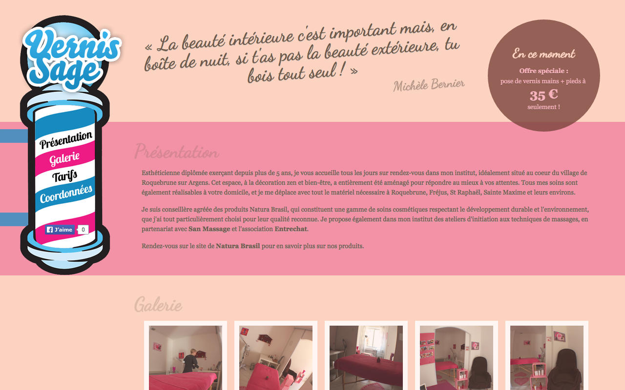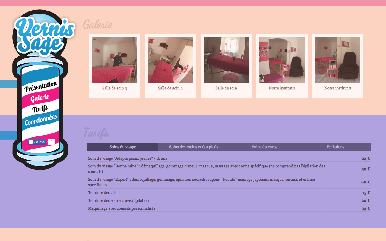 Site dynamique en HTML/CSS, avec quelques touches de PHP et Javascript pour l’institut de beauté Vernis Sage.